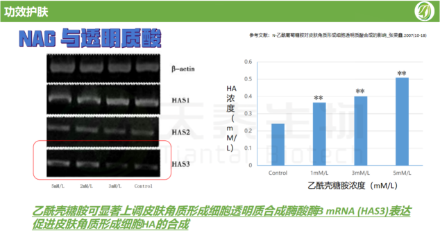 事實(shí)上,乙酰殼糖胺是透明質(zhì)酸的分子前體,它在肌膚內(nèi)轉(zhuǎn)化為透明質(zhì)酸,從而發(fā)揮其保濕和滋潤的功效。